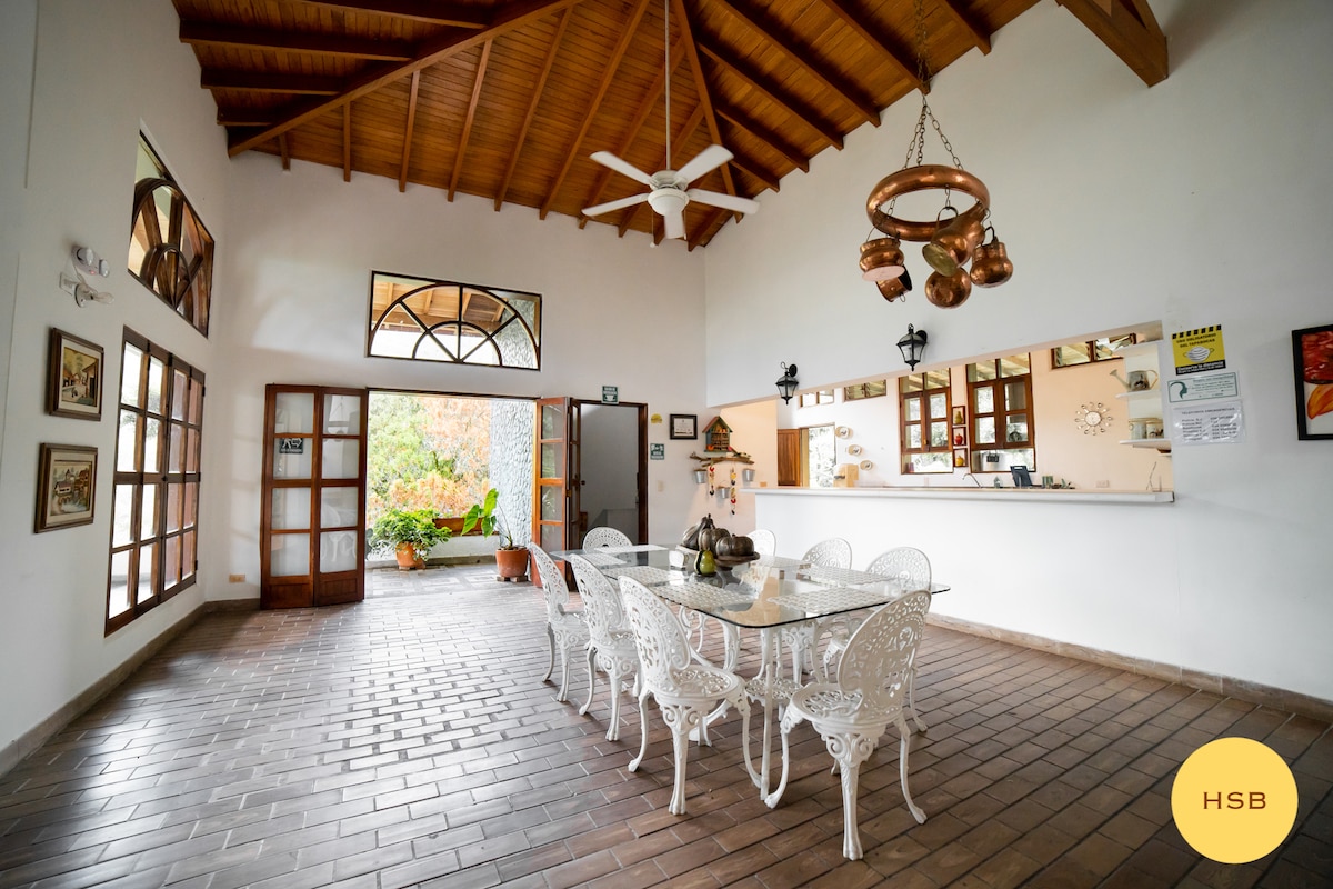 Welcome to the most spectacular villa in western Medellín. Private, warm, and surrounded by nature — just 2 km from San Jerónimo’s main park and 30 km from the city. Perfect for large groups: accommodates up to 27 guests. Includes 2 housekeepers available 8 hours a day. Planning a wedding or special event? Message us for details. We also offer: Horseback riding Massages Private transportation Live music & DJ services Catering Private chef service
