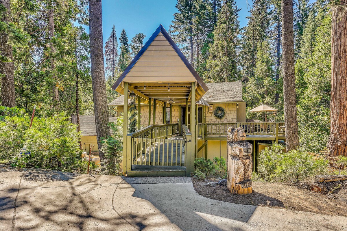 In an exclusive gated community nestled in the heart of the Sierra Nevada. Imagine waking up to towering pines whispering in the breeze and golden light filtering through the forest. Step onto the deck with your morning coffee and let the stillness wrap around you. This is where time slows, nature speaks, and memories are made. This authentic cabin features its original full knotty pine Interior, preserving the warmth and character of classic mountain living. Every detail tells a story, and this
