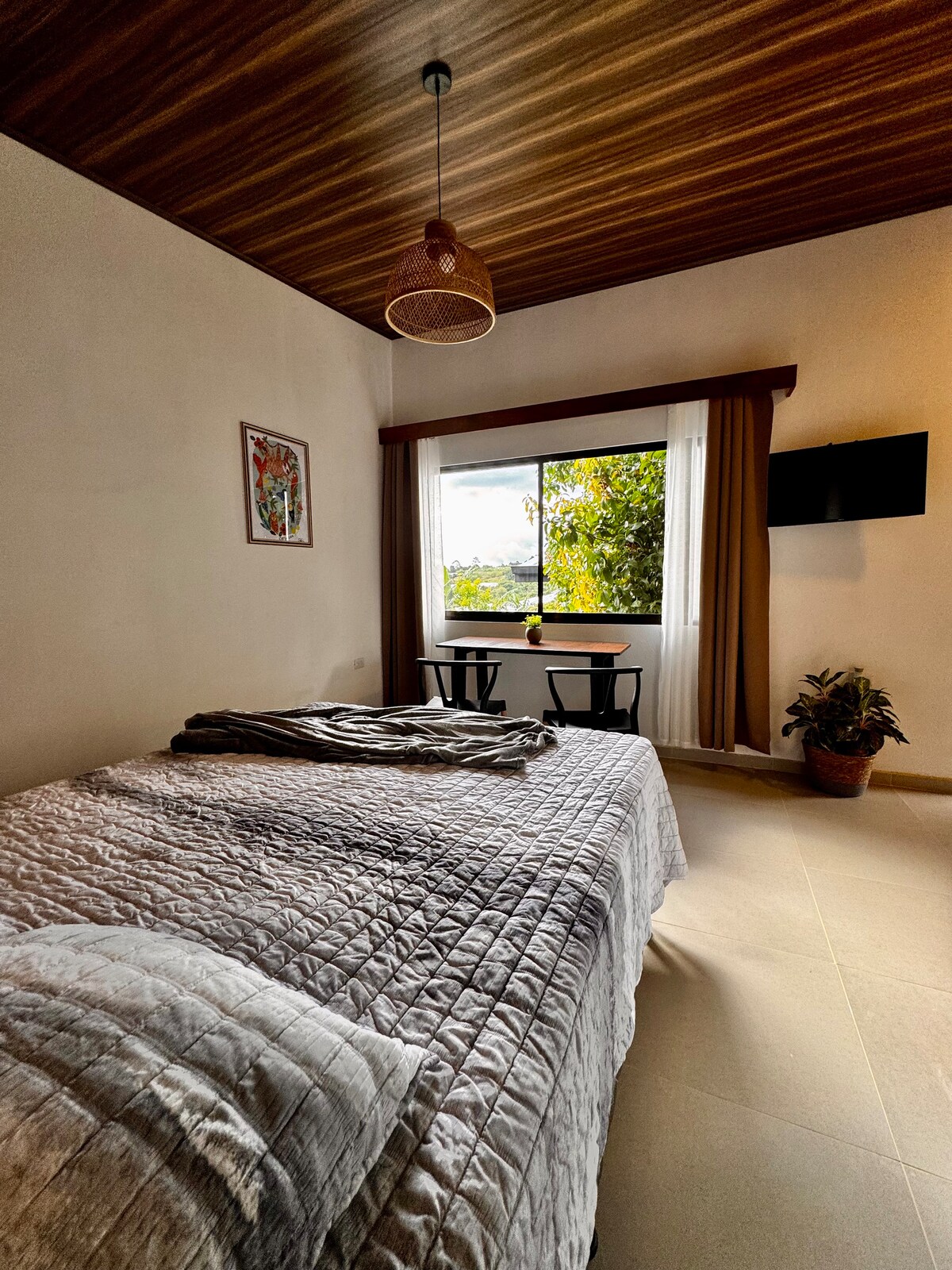 Sesuai untuk malam pertama atau terakhir anda berhampiran Lapangan Terbang SJO (20 min). Tree Room ialah studio persendirian yang selesa yang direka untuk penginapan yang ringkas dan selesa berhampiran lapangan terbang. Nikmati pendingin hawa, Wi-Fi pantas, pancuran mandi air panas dan teres yang tenang dikelilingi pokok buah-buahan dan burung. Daftar masuk sendiri yang mudah dan tempat letak kereta percuma memudahkan ketibaan lewat atau berlepas awal tanpa tekanan. Sesuai untuk pasangan, pengembara solo, atau pekerja jarak jauh yang mencari ketenangan, kemudahan dan nilai hebat berhampiran lapangan terbang.
