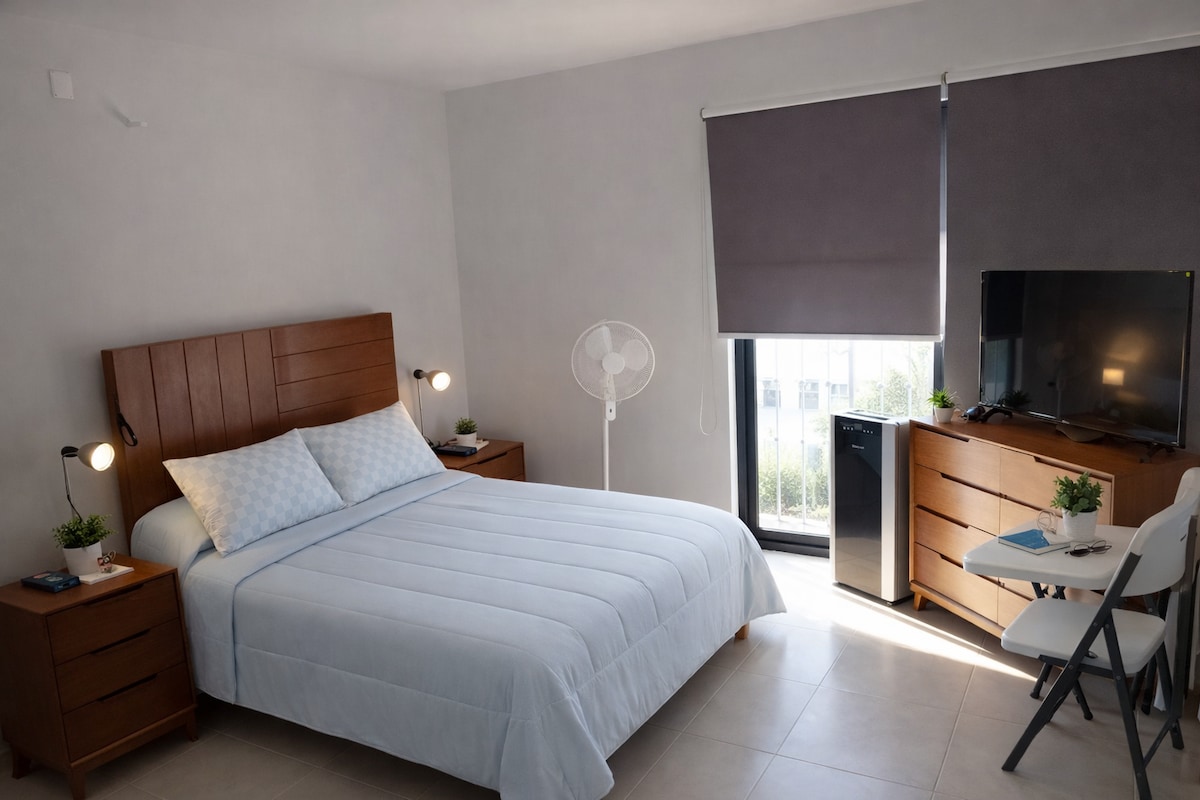 Selamat datang ke Espacio Haramara, tempat perlindungan di pinggir bandar León, Guanajuato. Sama ada anda datang untuk meneroka León, melawat Guanajuato, atau hanya berehat, Haramara menjemput anda untuk menikmati pengalaman yang tulen, di ruang yang direka untuk keselesaan dan ketenangan anda. Akses pantas ke Eje Metropolitano, zon perindustrian Puerto Interior, keluar ke ibu kota Guanajuato, antara lain.