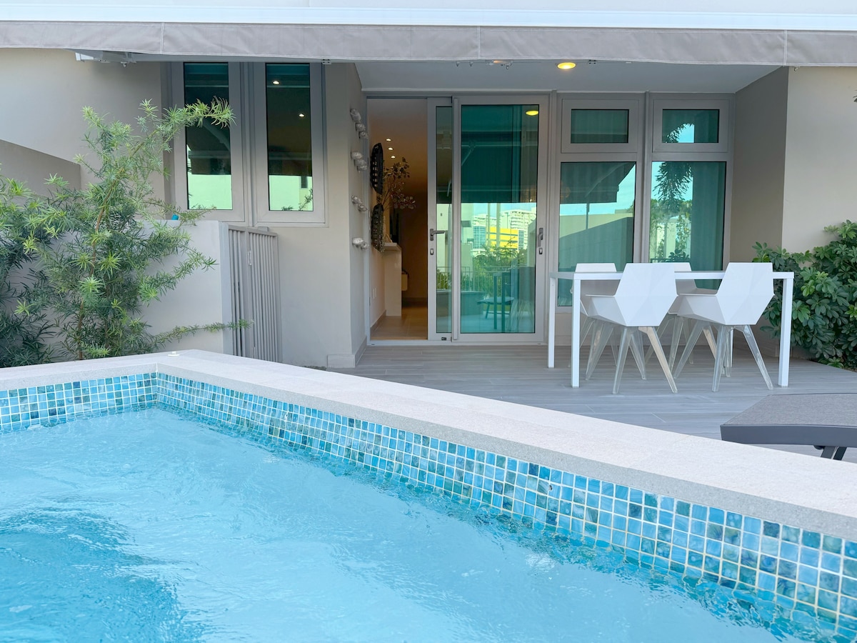 Wake up in a luxurious king bed with premium bedding, gazing out at your private pool framed by lush palm trees. Start the day with breakfast from the fully equipped kitchen, then catch up online with blazing-fast Wi-Fi under the shaded pergola. Cool off in the pool or rinse in the outdoor hot shower before walking just 50 yards to San Juan’s best beach. Ideal for couples, solo travelers, remote workers, or small families seeking comfort and style.