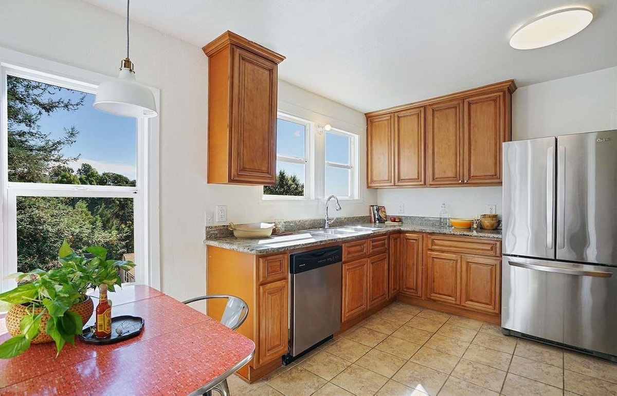 Bersantai di ruang yang tenang dan bergaya ini. Oakland Hills dipenuhi dengan pendakian yang menakjubkan, lokasi ini sesuai untuk lawatan sehari ke Napa (35 batu), San Francisco (11 batu) atau Carmel (120 m). Terletak di tengah-tengah untuk kerja atau bermain. 2 bilik tidur konsep terbuka ini adalah percutian yang damai. Memandangkan reka bentuk konsep terbuka - tidak ada banyak privasi antara bilik tidur, hanya pembahagi bilik rak buku besar b/w bilik. Terdapat beberapa ruang duduk di luar dan bumbung hijau juga! Dan pengecasan EV.