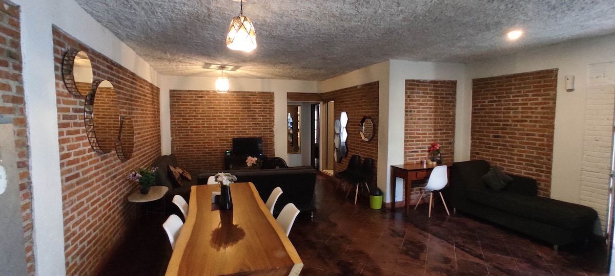 Selamat datang ke loteng selesa kami hanya satu blok dari la Parroquia San Miguel de Allende. Ruang ini berusia lebih daripada 100 tahun dan telah dipulihkan dengan indah untuk mengekalkan pesona bersejarahnya. Reka bentuknya minimalis, membiarkan intipati bangunan lama bersinar. Ia mempunyai dapur moden, Wi-Fi, penyaman udara, pemanas dan mesin kopi. Bumbung ini menawarkan pemandangan petang yang menakjubkan.