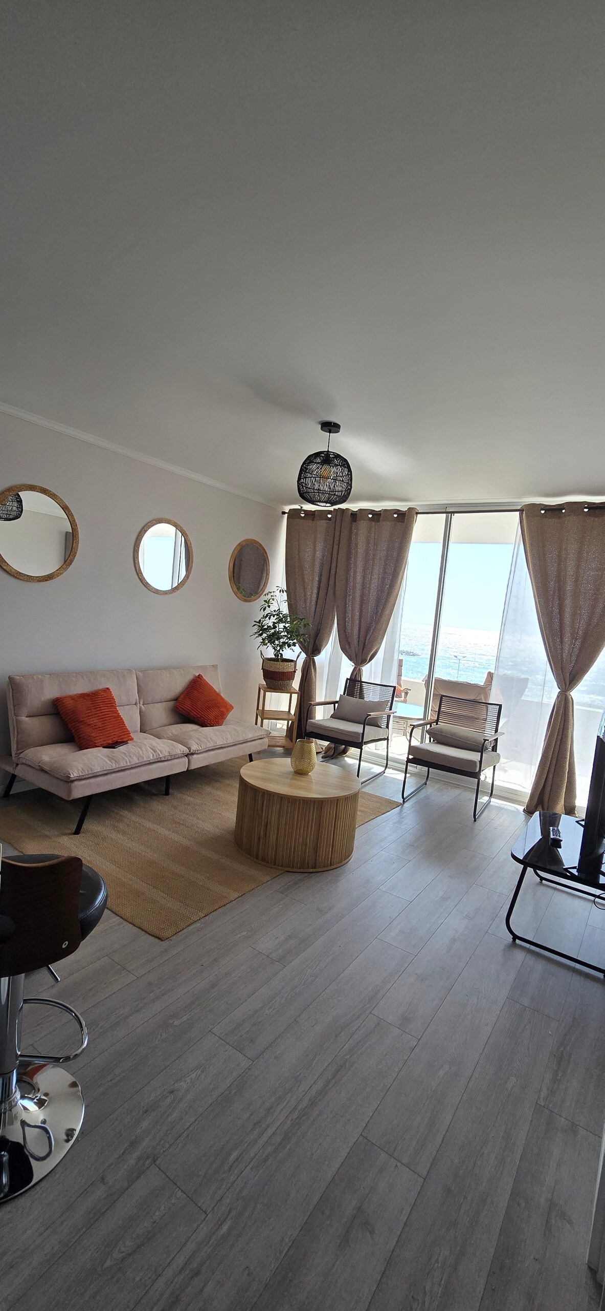 Apartmen baru dengan pemandangan laut yang menakjubkan, terletak di hadapan salah satu pantai terbaik di Arica (Laucho), beberapa langkah dari restoran, pulau Alacrán dan pusat bersejarah bandar ini. Dilengkapi dengan peralatan mewah dan kemudahan terbaik, 1 katil king, TV 75”, 1 sofa/katil, 1 sofa/katil, kerusi kulit yang luas dan selesa, kerusi kulit yang luas dan selesa, langsir hitam, langsir hitam, kawasan kerja, tuala mandi, seterika pakaian, peti sejuk besar. Dengan kolam renang dan tempat letak kereta percuma di dalam kondominium.
