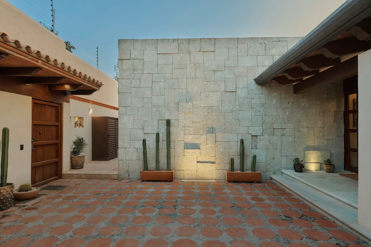Promosi: mezcal percuma + daftar keluar lewat (tertakluk kepada ketersediaan). Rumah cantik dengan kolam renang persendirian yang terletak di komuniti berpagar paling selamat di Oaxaca, hanya 15 minit dari Pusat Bersejarah. Bilik tidur utama dengan katil King dan katil sofa; bilik tidur kedua dengan dua katil double dan tirai privasi (anda berjalan melalui bilik ini untuk mengakses bilik tidur utama). Dapur, taman, WiFi, pendingin hawa dan tempat letak kereta yang lengkap. Sesuai untuk mereka yang mencari keselesaan. Tiada parti. Kapasiti: 7 orang dewasa dan 1 kanak-kanak.