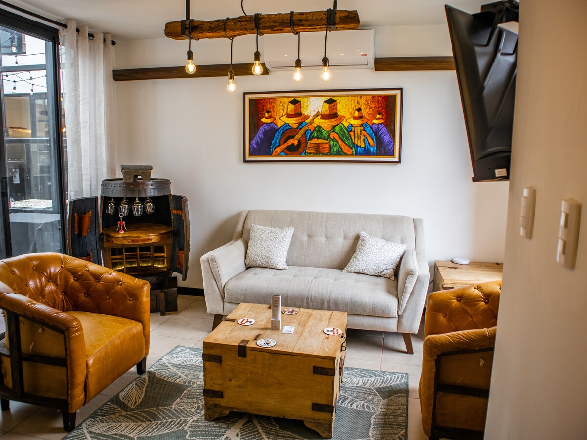 Selamat datang ke apartmen mewah anda di komuniti 'Residenciales Las Flores' yang berpagar dan selamat, terletak 20 minit dari pusat bandar Antigua. Ini ialah rumah keluarga yang baru dibina dengan kediaman tingkat atas berasingan yang memberikan pemandangan menakjubkan ke gunung berapi 'Agua dan Fuego'. Termasuk satu bilik tidur besar, almari pakaian berjalan masuk, dapur penuh, dan patio luar dengan pemandangan yang indah Katil saiz king dan katil sofa saiz penuh Internet berkelajuan tinggi Tersedia untuk sewaan jangka pendek atau jangka panjang Pembantu rumah tersedia atas permintaan