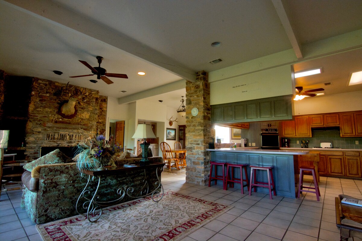 Ruang terbuka yang luas dan ruang dalaman yang luas! Rumah batu asli San Saba ini menghadap ke kolam persendirian kecil yang dilengkapi dengan bass. Dari beranda depan yang luas, anda boleh melihat hidupan liar, termasuk rusa, itik dan burung lain dan menikmati matahari terbit atau matahari terbenam Texas yang indah. Ini benar-benar syurga pemerhati burung! Star-gazers akan menyukai langit gelap yang membolehkan pemandangan galaksi dan buruj yang jelas. * Tanya mengenai kadar istimewa kami untuk dua orang tetamu yang menggunakan suite utama dan ruang tamu sahaja.