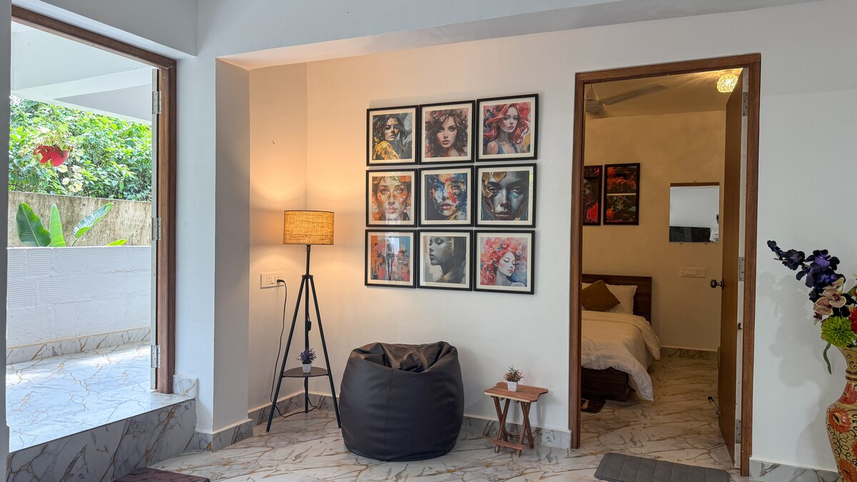 Discover a world of peace & inspiration at The Pause Project, a cozy romantic Airbnb nestled in the middle of a lush forest in Siolim, North Goa. Perfect for solo travelers, couples & families, it offers a space to slow down. Immerse yourself in books, music, travel memories & a lived-in ambience that feels like home. Cook a meal in the kitchenette or explore Siolim, known for its cafes & bars, with Anjuna, Vagator, Assagao & Morjim, Mandrem beaches 15-20 min away & 35 min from MOPA airport.