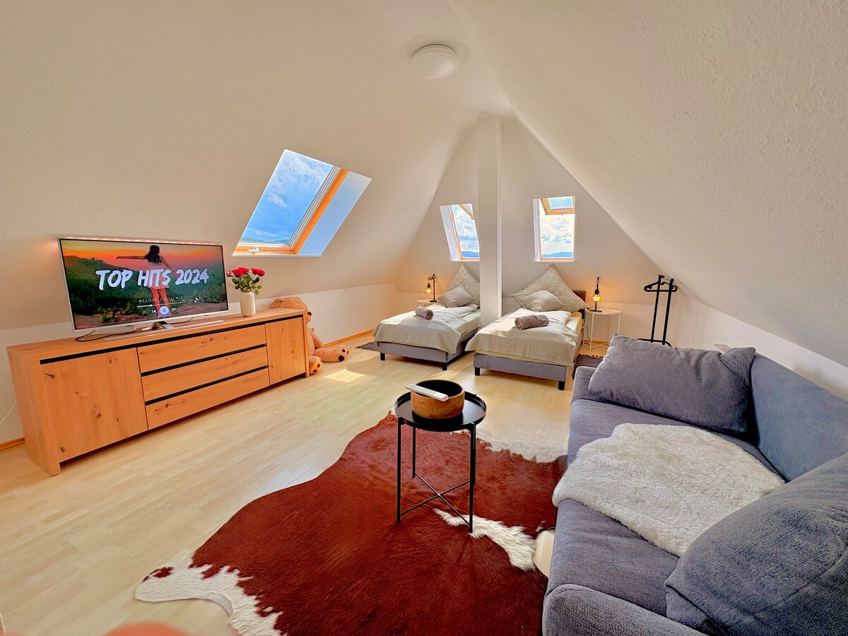 Apartmen studio berperabot moden yang baru diubahsuai (bukan bilik tidur berasingan) dengan ruang tamu seluas 40 meter persegi menanti anda. Apartmen ini terletak di rumah berasingan di ruang bawah tanah. Ia terletak di kawasan perumahan yang tenang di sekitar hutan di titik permulaan yang sempurna untuk aktiviti seperti berbasikal dan mendaki. Pusat Furtwangen dan membeli-belah dalam jarak berjalan kaki dalam masa 20 minit. (3 minit dengan kereta).