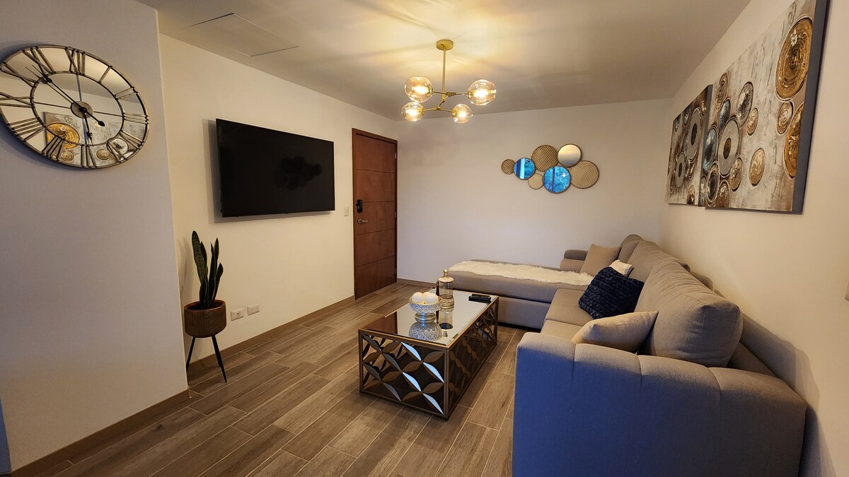 Penginapan yang selesa dan berpusat ini mempunyai dua bilik tidur, dua katil double, katil Queen dan sofa double, dua bilik mandi dengan tuala, ruang tamu, ruang makan, dapur lengkap, dua balkoni, TV, wifi dan dua taman. Bangunan ini mempunyai kemudahan seperti gimnasium, rakan sekerja, sudut bbq, sudut bbq, permainan kanak-kanak, permainan kanak-kanak, atas bumbung dengan ruang lubang api, churrasquera dan kawasan piñata. Ia berjarak 10 minit dari Lapangan Terbang La Aurora, 5 dari Oakland Mall dan Zona Viva.