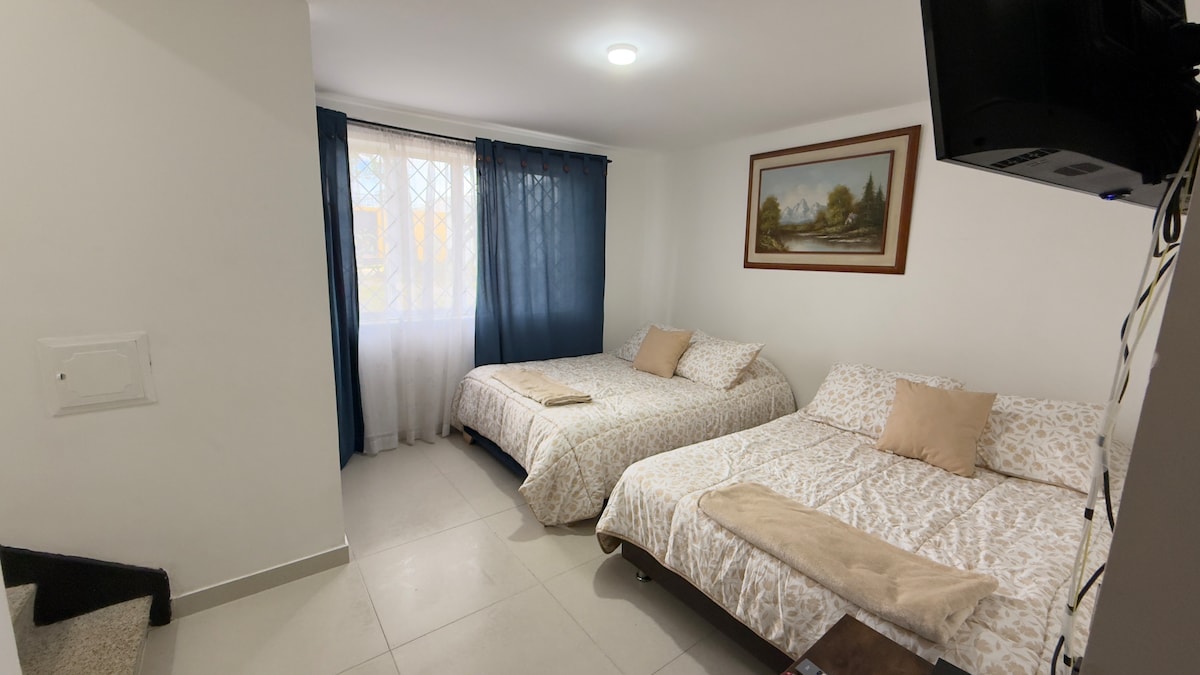 Loteng Selesa, Tengah, dan Selamat! Hanya 10 minit dari lapangan terbang dan 5 minit dari terminal bas El Salitre. Sesuai untuk pasangan yang mencari privasi dan keselesaan. Nikmati teres luar berperabot anda sendiri, sesuai untuk berehat dan menikmati udara segar. Anda akan dikelilingi oleh lebih 15 restoran, kedai runcit, kedai roti, bank dan 2 pusat membeli-belah. Sesuai untuk proses visa Amerika anda, CAS hanya 7 minit dari sini.