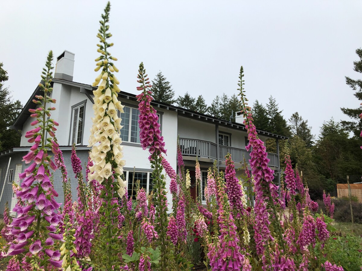 Nombor permit 231040 Kabin persendirian dalam suasana yang tenang dan berhutan, 20 minit ke Santa Cruz. Rumah utama mempunyai dua bilik tidur dan loteng. Tab mandi air panas, pancuran mandi luar, dapur luar, barbeku gas, dek besar, pemandangan. Di dalam rumah terdapat dapur moden yang lengkap, bilik yang besar, pendiangan gas, loteng, bilik tidur utama, bilik tidur tetamu, dua bilik mandi. Saya tidak lagi dibenarkan menyewakan dua ADU. Perabot berkualiti, katil selesa, sofa seksyen bergaya, meja makan besar.