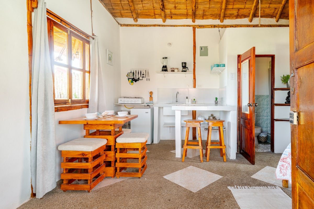 Sangat dekat dengan pantai, suite kami menawarkan suasana yang menyenangkan antara gunung dan laut. Rasa selesa di katil 2 dan 1/2 tempat duduk kami Tempat yang ideal untuk bertemu orang lain sambil berlatih yoga, meluncur, atau belajar bahasa Sepanyol! nikmati keseronokan berada di tengah-tengah alam semula jadi, tetapi dengan keselesaan yang anda suka Tanya tentang diskaun penginapan jangka panjang kami. Kami mempunyai penjana elektrik senyap untuk memastikan keselesaan anda sekiranya berlaku gangguan bekalan elektrik.