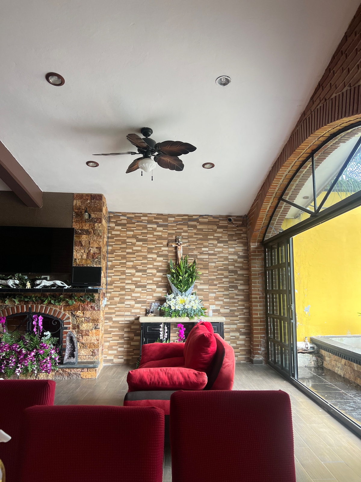 40 min. dari bandar Puebla dan 15 minit dari Atlixco, dalam ruang 1,220 m2 dengan pelbagai pokok dan tumbuh-tumbuhan, anda akan menemui rumah yang selesa dengan seni bina yang dipengaruhi Mediterranean, butiran ketukangan Mexico dan objek purba. Teres di kaki kolam renang dengan barbeku, sudut pandangan tingkat atas, lorong renang berhawa dingin dengan tenaga solar, palapa besar dikelilingi oleh kotak pasir dengan permainan kanak-kanak dan satu lagi palapa kecil dengan pejalan kaki di atas kolam dengan ikan.