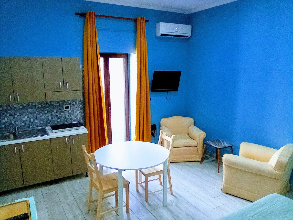 Monolocale indipendente con bagno e angolo cottura; locale climatizzato; giardino adiacente con alberi di arancio; possibilità fino a 4 posti letto (1 matrimoniale e 2 singoli), più eventuale aggiunta di culla per bambini; posto auto in cortile i