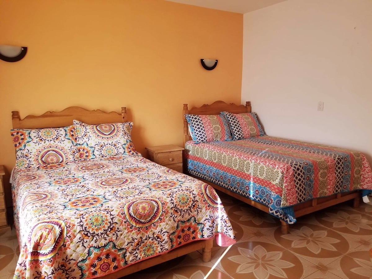 Penginapan ini mempunyai tiga bilik tidur yang bersih, luas dan selesa, masing-masing dengan bilik mandi peribadi dan bilik persalinan, dan merupakan sebahagian daripada rumah utama. Ia mempunyai ruang tamu kecil dan dapur kecil yang terbuka ke luar. Kawasan umum yang luas, kolam renang dan tempat letak kereta tersedia. Sesuai untuk keluarga. Kami terletak di Santa María del Tule, lokasi yang sesuai untuk meneroka Oaxaca (Ciclo Via, Ruta del Mezcal, dan Tlacolula Valley), 20 minit dari pusat bandar.
