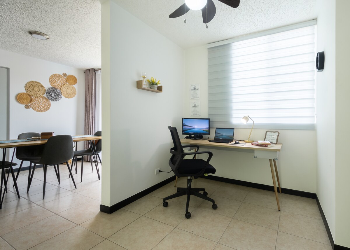 Selamat datang ke ruang ajaib ini yang terletak 30 minit/9.9 batu dari SJO. Ia mempunyai balkoni yang menghadap kolam renang, gunung, pokok dan kawasan hijau. Hijau adalah salah satu warna kegemaran saya, yang memberi inspirasi kepada reka bentuk bilik. Ia telah dicipta dengan teliti untuk bertolak ansur, dengan segala-galanya yang diperlukan untuk memasak dan membuat anda berasa selesa seperti di rumah. Secrt adalah salah satu bangunan yang paling luar biasa, dipenuhi dengan ruang yang berbeza untuk bekerja, bekerjasama, atau hanya berehat. Saya mengalu-alukan anda dan berharap anda menikmati penginapan anda.