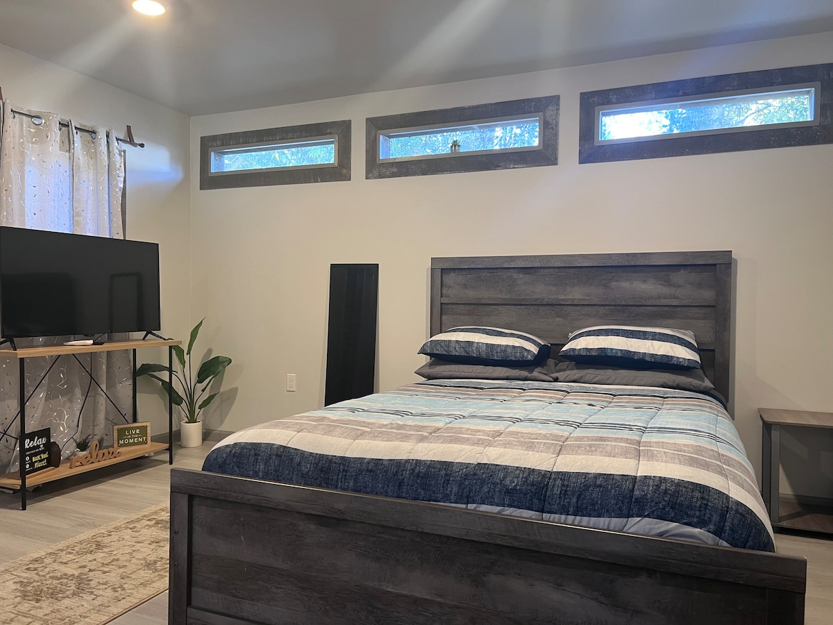 Selamat datang ke rumah kecil kami yang selesa yang terletak di halaman belakang saya yang selamat, di mana katil bersaiz queen menjanjikan tidur malam yang tenang dan dapur kecil kami yang serba lengkap memudahkan penyediaan makanan. Anda akan mendapat tempat letak kereta percuma di halaman belakang yang terletak hanya beberapa langkah dari rumah kecil ini. Selain itu, anda akan berpeluang untuk berkumpul di sekitar lubang api luar untuk malam yang selesa di bawah bintang-bintang. Di dalam, berehat dengan TV pintar dan terus berhubung dengan Wi-Fi percuma.