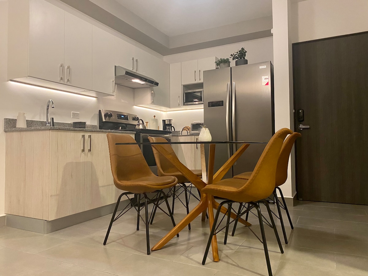 Apartmen moden dan serba lengkap dengan pemandangan panorama gunung berapi San Salvador. Terletak di tingkat 9 kompleks kediaman di Santa Tecla, ia sesuai untuk bekerja, berehat, dan bersantai. Dikelilingi oleh kawasan hijau yang luas dan ruang rekreasi yang membantu mengimbangi hari anda antara kerja, keluarga, senaman, dan rehat. Berdekatan dengan pasar raya, restoran, dan pelbagai kedai, dengan akses pantas ke jalan-jalan utama yang menghubungkan ke San Salvador, La Libertad, dan rantau barat.