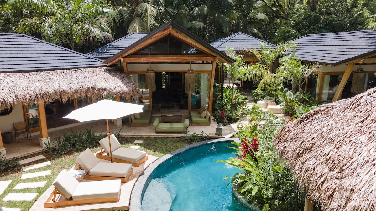 Rumah dengan kolam renang dan hutan tropika. Montezuma