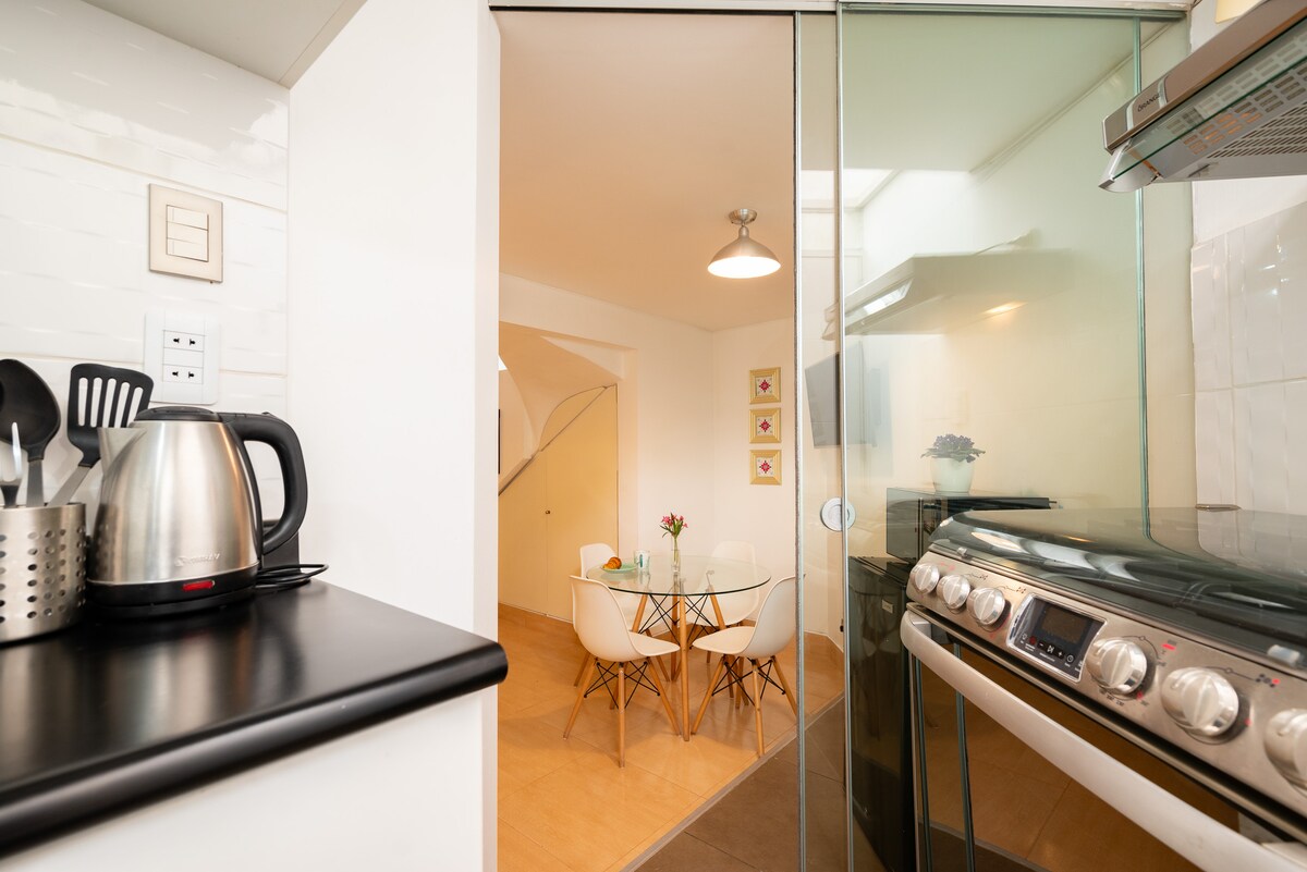 Nikmati reka bentuk penginapan yang bebas sepenuhnya, cerah, tenang dan berpusat ini. Kami datang berjalan dan menikmati Barranco (dan Lima) 30 tahun yang lalu dan telah mencipta ruang ini dengan semua cinta kami. Ruang yang direka diviajer @scurios @s yang menghargai yang lain selepas menghayati bandar seperti Lima dan berehat untuk bangun dengan kicauan burung. Kami terletak beberapa meter dari hab gastronomi (Central, Merit, dll.), kafe, kedai pereka dan muzium.