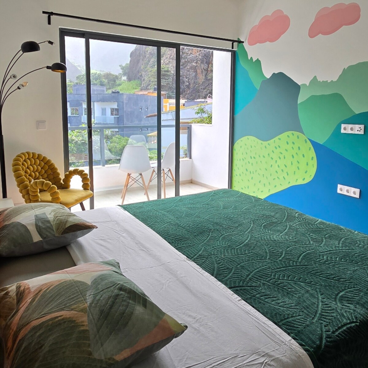 Ini adalah STUDIO dengan pemandangan menakjubkan ke atas lembah Paul. Ia dilengkapi dengan 1 katil double dan 2 katil single tambahan untuk memuatkan sehingga 4 orang (1 pasangan + 2 kanak-kanak sehingga 10 tahun). Teres persendirian, dapur dan ruang tamu untuk penginapan jangka panjang. Sarapan disertakan dalam kadar bilik dan kami akan memberikan anda maklumat peribadi mengenai pendakian dan cara melawat tempat yang paling indah di Santo Antão.