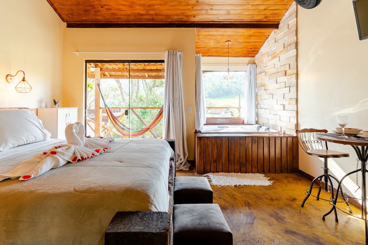 Selamat 🌈 ❤️datang SAMBUNGAN RECANTO Cabana Paz Nikmati hujung minggu untuk dua orang dengan privasi, kemewahan dan ketenangan Tempat yang tenang, dikelilingi oleh alam semula jadi yang menakjubkan. Persekitaran dirancang dengan teliti, untuk mereka yang mencari keselesaan. Datang dan nikmati ruang ini yang dikelilingi oleh gunung dan ketenangan. Chalé Paz dan ruang bergaya dengan reka bentuk yang selesa. Nikmati pemandangan matahari terbenam yang indah sambil menghirup wain! Di atas pendiangan atau api lantai. Hidro berganda dengan pemandangan yang menakjubkan