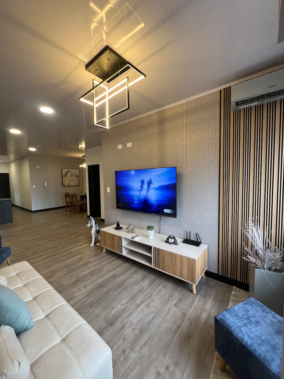 Terokai pengalaman unik yang menggabungkan keselesaan dan teknologi. Apartmen pintar ini membolehkan anda mengawal lampu dan pintu dengan Alexa, mewujudkan suasana yang sempurna untuk setiap saat. Nikmati ruang yang luas, dapur moden dan bilik yang elegan dengan pendingin hawa dan TV. Apabila malam menjelma, berehat di halaman berasingan dengan rumput sintetik dan perabot pereka, sambil memandang pemandangan panorama bandar di bawah bulan tiruan.