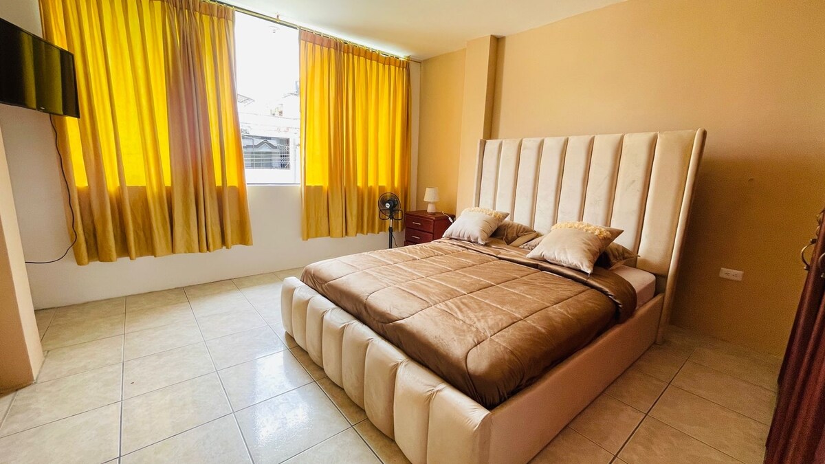 Este lugar excepcional y tranquilo, en la zona más exclusiva y aniñada de Santo Domingo, será tu mejor opción, Disfruta de una estadía memorable, con piscina y jacuzzi, Suite de lujo en la urbanización Mutualista Benalcazar, con cama DE TRES PLAZAS y un sofá cama espacioso, piscina y jacuzzi, zona de parrilladas, cocina, ducha caliente.