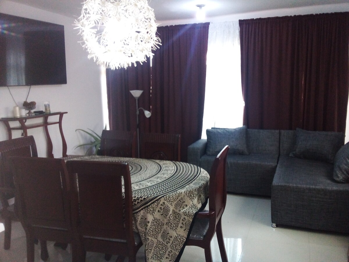 1 bilik, berperabot lengkap dan lengkap dengan semua kemudahan yang anda perlukan untuk penginapan. Katil kelamin, dapur penuh dengan peti sejuk dan dapur, penyaman udara, dan TV dengan kabel, wifi, gas, air panas. Akses kawasan rekreasi dengan jakuzi, ruang makan dan ruang untuk aktiviti. Terletak hanya 20 minit dari ibu kota, sesuai untuk mereka yang ingin berada berhampiran dengan orang yang mereka sayangi dan mempunyai akses mudah ke tempat-tempat seperti Mirador Norte dan jalan lingkar Santo Domingo.