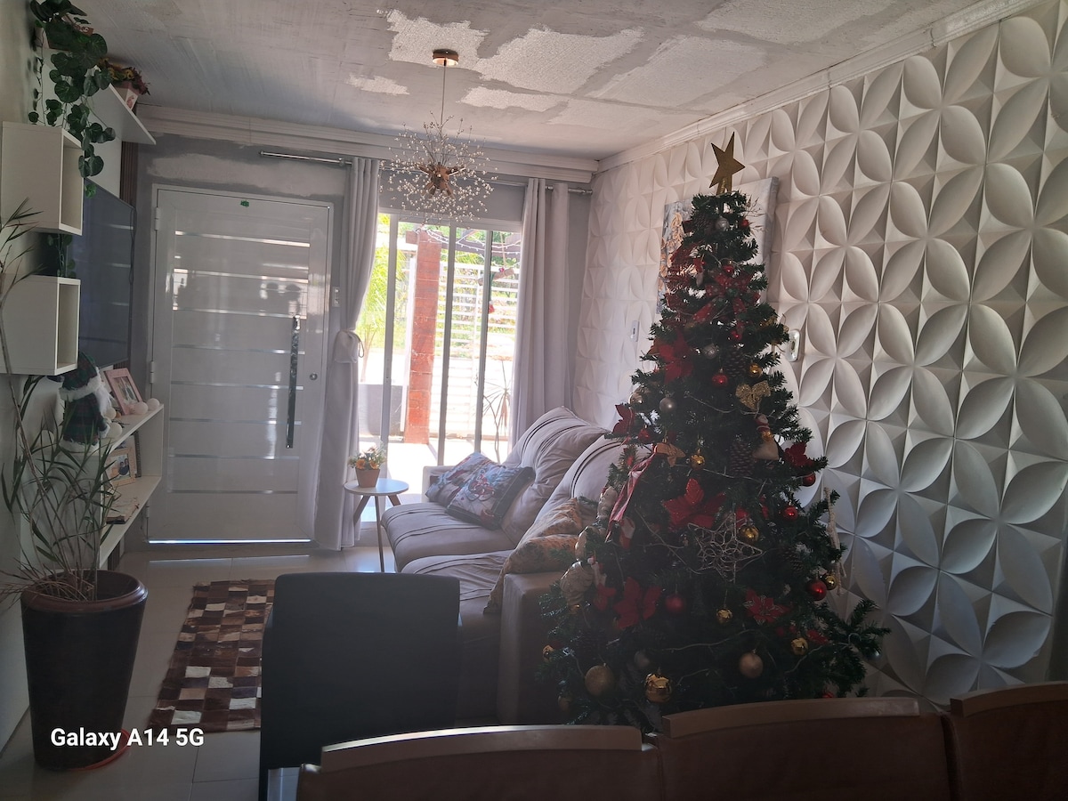 Bersantai dengan seluruh keluarga di penginapan yang tenang ini. Rumah terletak 1 min dari pintu masuk bandar Persekitaran yang selesa dan moden, mengandungi 2 bilik tidur dengan penyaman udara dan 1 bilik tidur sedang berlangsung dan sofa di ruang tamu yang boleh memuatkan 1 kanak-kanak. (Anda boleh memesan tilam tambahan), serta dapur lengkap dengan semua yang anda perlukan, mainan di ruang tamu untuk kanak-kanak bermain, dan bilik mandi. Berhampiran dengan stesen minyak, restoran, pasar raya dan stesen bas di bandar