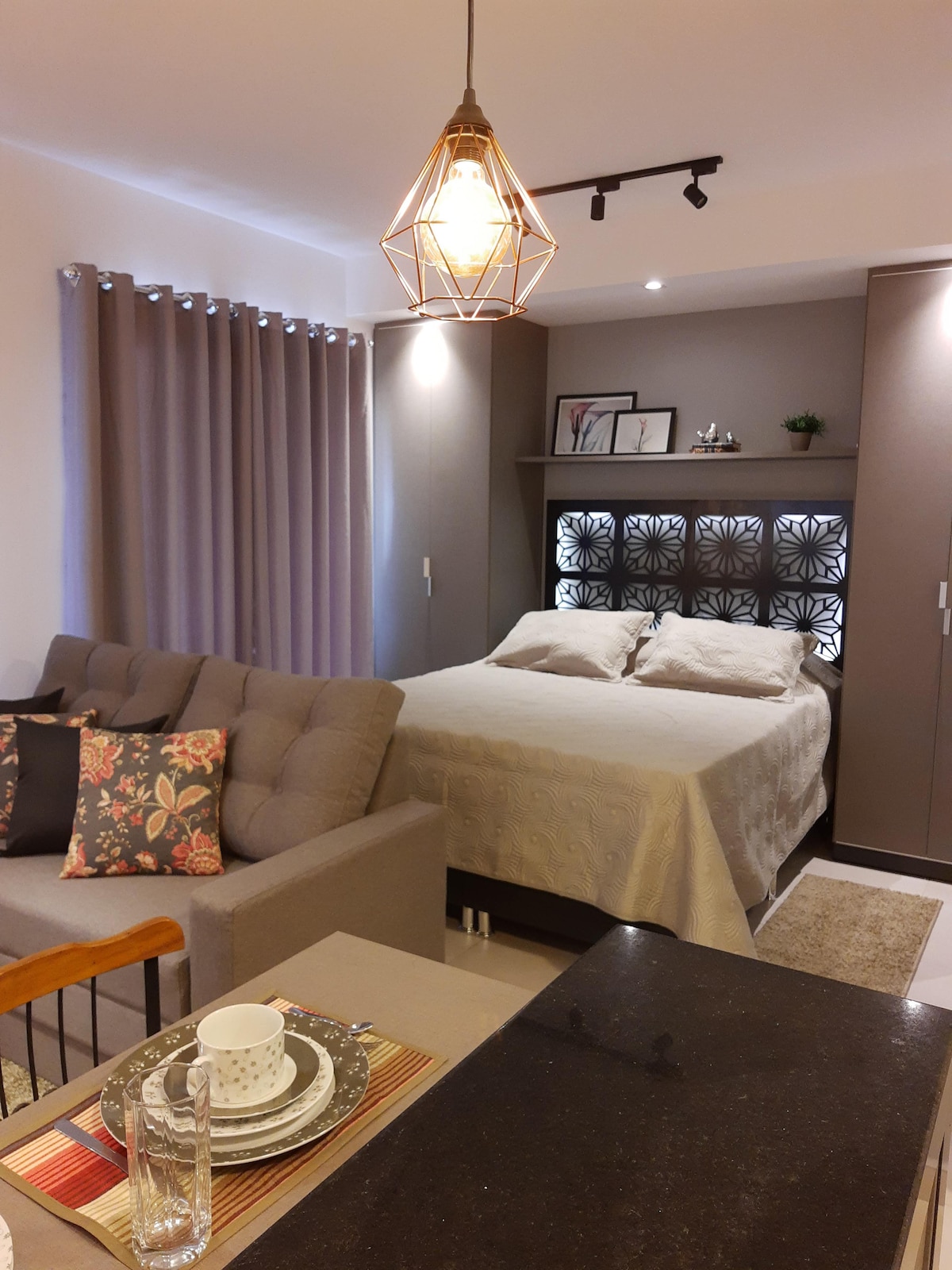 Tiba, bernafas lega dan berasa selesa seperti di rumah! Apartmen suite 1 bilik tidur yang selesa dan sangat bersih ini sesuai untuk pasangan atau pengembara perniagaan dan pelajar yang mencari keselesaan, ketenangan dan lokasi yang tiada tandingan di tengah-tengah Zon Selatan Rio Preto. Kami suka mengalu-alukan tetamu dan menjamin penginapan yang tenang! Datang untuk berehat, bekerja atau menikmati bandar ini! Penginapan sementara anda yang selesa di Zon Selatan menanti! Tempah sekarang dan simpan tarikh anda!