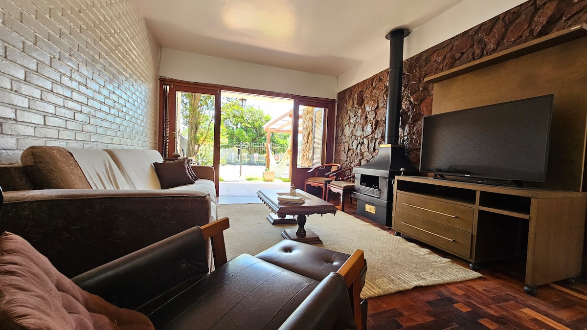 Pantai yang tenang, tunggangan schooner, barbeku keluarga dan matahari terbenam yang paling indah di Lagoa dos Patos menanti anda dalam percutian bandar ini! Rumah satu tingkat dengan salah satu bilik mandi yang boleh diakses, dengan persekitaran yang luas dua blok dari Praia das Ondinas (Praia das Mães), menawarkan penginapan untuk sehingga 7 tetamu. Barbeku dalaman, balkoni, aircond di kedua-dua bilik tidur, pendiangan, garaj, internet wifi.