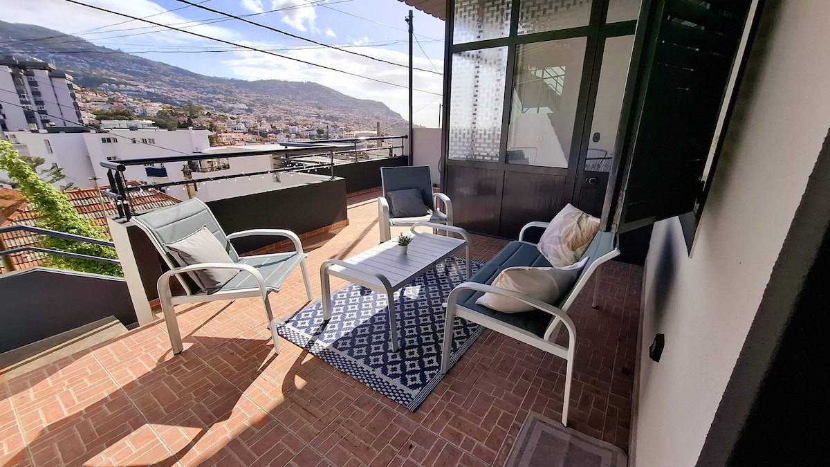 Espaço com excelente exposição solar com vista pacífica e deslumbrante sobre o mar, montanha e cidades de Câmara de Lobos e do Funchal. Fica localizado no terceiro piso de uma casa particular com acesso privado pela lateral da casa. Possui três quartos, uma casa de banho e um open space com sala de estar, cozinha e zona de refeição. A entrada permite a colocação de uma espreguiçadeira para beneficiar do sol e da vista soberba sobre o mar e a montanha.