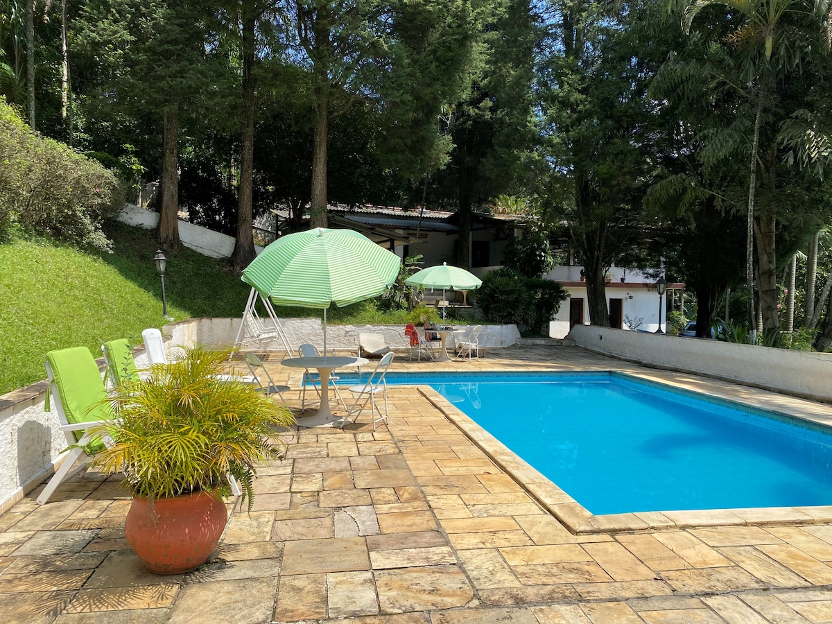 🔥🏊♀️ Kolam Renang Panas Kebenaran, dengan urut hidro dan pencahayaan Kawasan ♨️ Fogueira Penyaman udara❄️🔥 panas dan sejuk di sesetengah bilik 🔌 Penjana tersedia jika lampu tidak ada 💧Kami menyediakan air mineral galon secara percuma 🌳 Tempatan dalam persekitaran pemuliharaan alam sekitar berhampiran São Paulo 📡 Internet Wi-Fi dua pembawa yang berbeza dan dengan kelajuan yang hebat - 🛝 Padang permainan 🐱🐶 Kami mesra haiwan peliharaan! 🦉🐦🐒 Tempat perlindungan untuk berehat di dalam Hutan Atlantik. Kapasiti 📑 maksimum 24 orang;