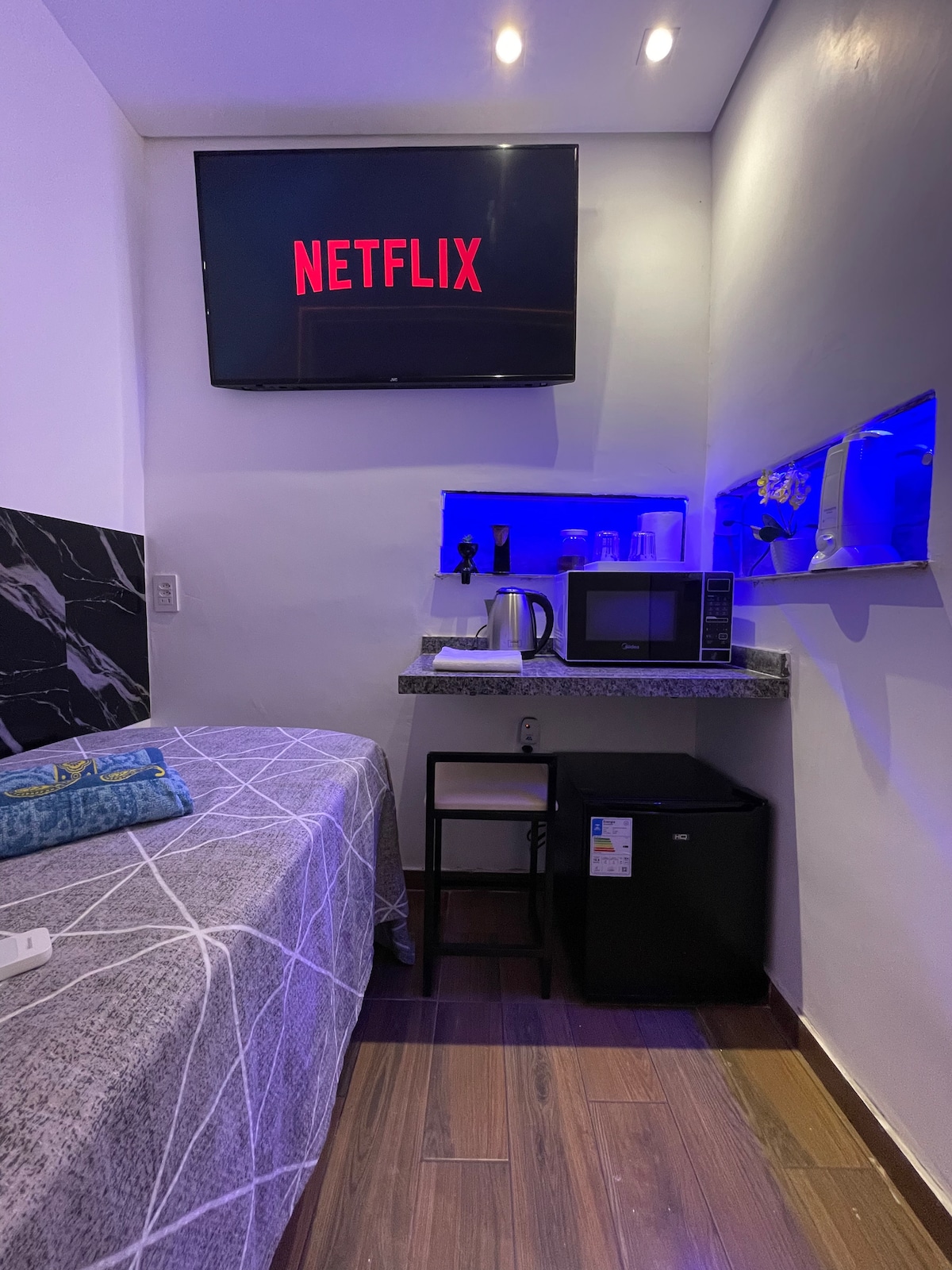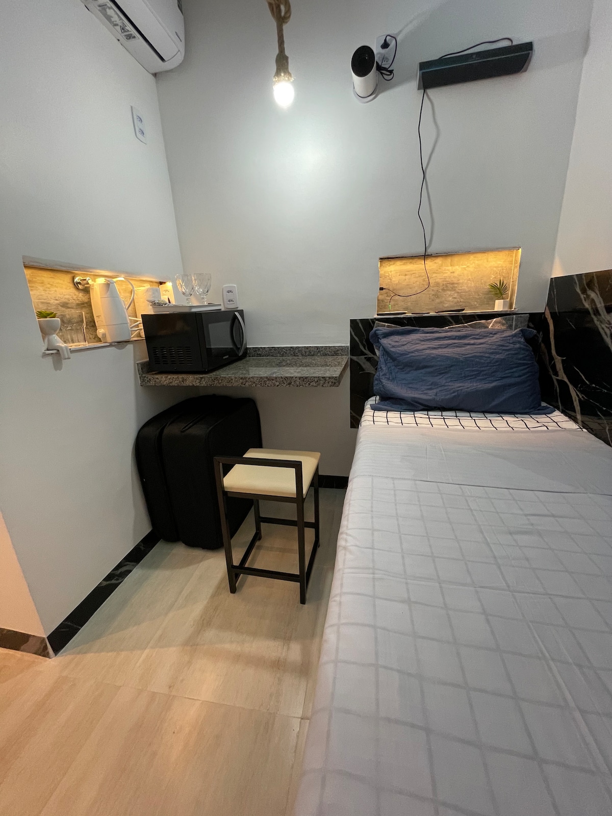 Ruang yang menawan, selesa dan tenang. Katil Queen yang sangat selesa, katil sofa yang luas, boleh memuatkan sehingga 4 tetamu. TV Smart 50', Ar cond, pengering rambut, ferroe, dapur penuh. Mesra pasangan. Mesra Haiwan Peliharaan! Struktur hotel, meja depan, daftar masuk sendiri, Kondominium dengan kolam renang, pusat kecergasan, dobi, pasar mini dan tanah haiwan peliharaan. Tempat letak kereta di tapak. Bairro Campo Belo, 5 minit dari lapangan terbang Congonhas, rantau dengan jumlah infrastruktur restoran, perdagangan dan perkhidmatan.