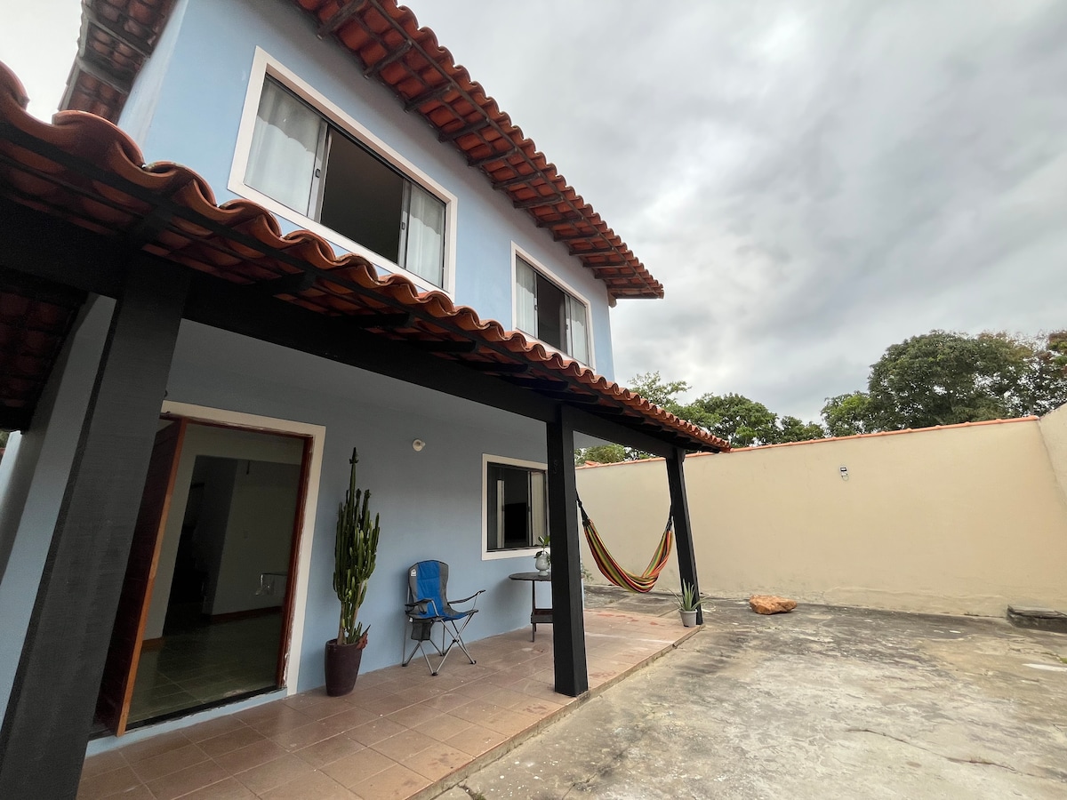 Rumah yang sesuai untuk menempatkan keluarga dan kumpulan rakan. Sehingga 8 orang. Luas, garaj (2 ruang), ruang tamu, 3 bilik tidur berhawa dingin (1 suite), bilik TV dengan katil sofa, dapur lengkap, bilik mandi sosial, ruang dobi dan balkoni besar. Wi-Fi, Netflix, PrimeVideo dan ClaroTV tersedia! Berdekatan dengan pasar raya, Havan, kedai roti dan kemudahan lain. Ia kurang daripada 1 minit dari Rod. Dep. Márcio Corrêa, RJ-140, 10 minit dari pusat bandar São Pedro da Aldeia dan 20 minit dari pusat bandar Cabo Frio.