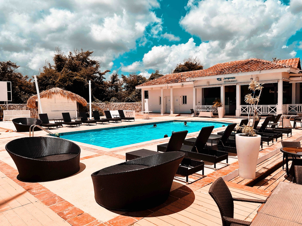 Di mana laut memeluk tanah, terdapat Apartmen yang selesa dan cantik ini luas di semua kawasan, dengan sentuhan moden dan hangat. Ia mempunyai kolam air tawar dan akses terus ke resort Pantai Tragadero di mana anda akan menemui beberapa kolam air masin, restoran, bar, kedai dll. Penginapan yang cantik ini hanya 25 minit dari Lapangan Terbang La Romana Saya akan menunggu anda di syurga ini.