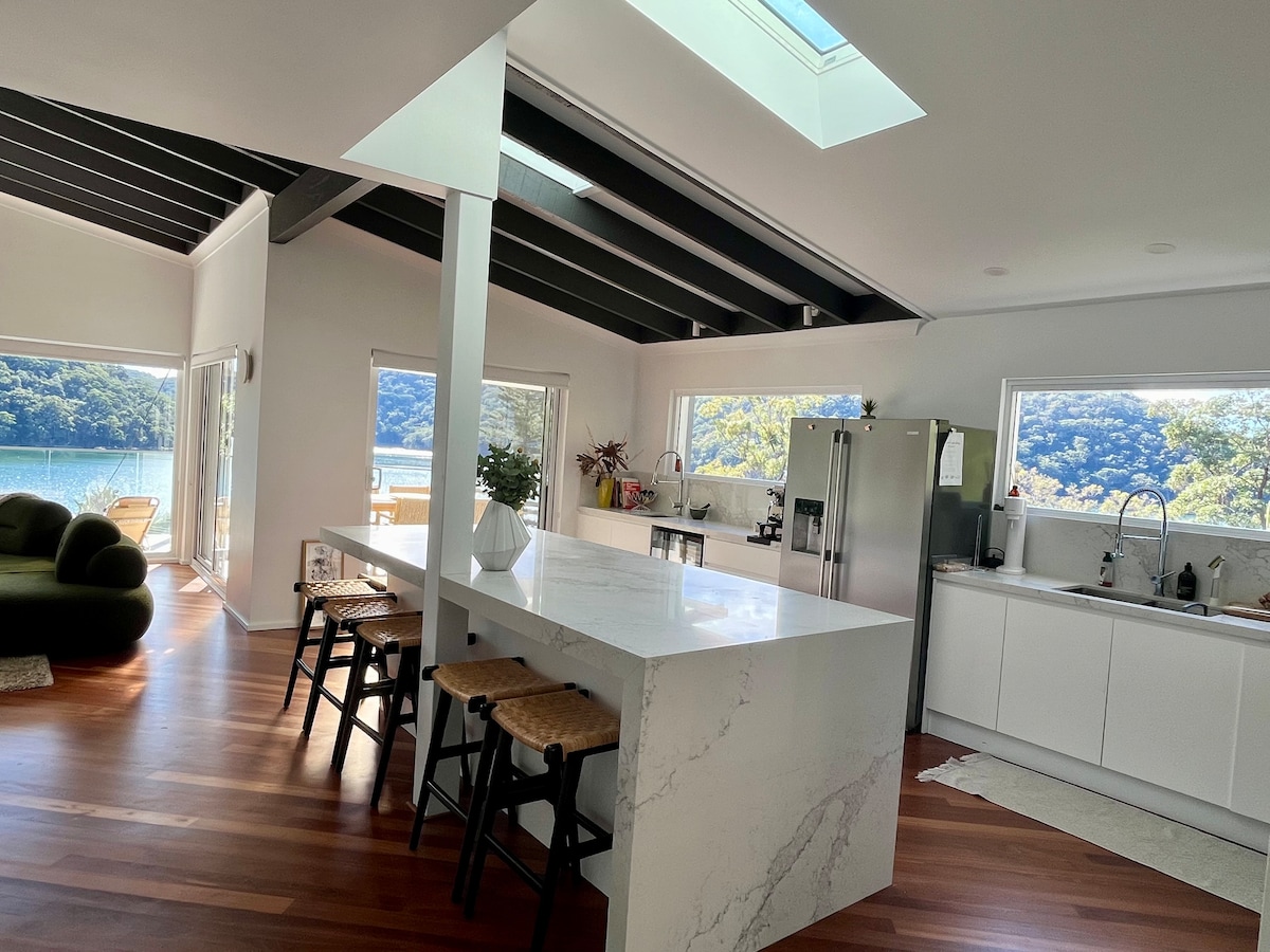 Sitting On The Dock Of The Bay…is our tranquil designer-styled bay house. We believe it is the Central Coast’s best kept secret. At the end of a rain-forested road, our waterfront reserve retreat commands an unbeatable view over Phegan’s Bay, a little known, secluded waterway far from the hustle and bustle, yet close enough to dip into the Central Coasts many activities and services. You will wake up to the romantic sound of anchors clinking, birds chirruping, immersed in lifes simple pleasures.