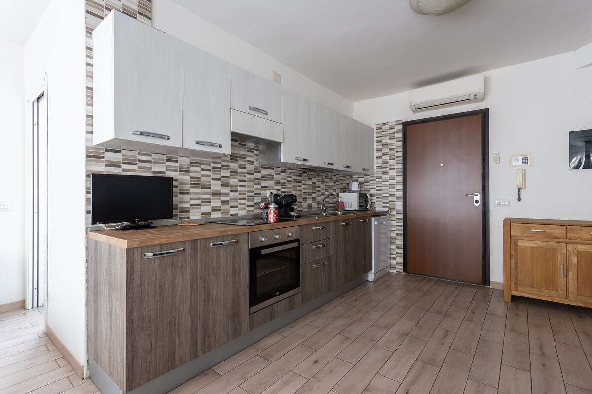 Spacebility Expo mempunyai 1 bilik tidur cerah dengan bilik mandi en-suite, WIFI SERAT OPTIK PERCUMA TANPA HAD dan PENDINGIN HAWA, dapur kecil, ruang tamu yang selesa, dan, yang paling penting, menghubungkan anda dengan tempat teratas di Cagliari, iaitu Poetto Beach, Bonaria Church, Cagliari Exhibition Center.