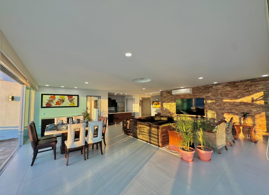 Welcome to a peaceful oceanfront escape, this top-floor penthouse in Nuevo Vallarta offers space, privacy, and direct access to the coast. - Sleeps 12 | 3 bedrooms | 3 beds | 2 bathrooms - Private terrace w/ spa-pool & outdoor dining - Direct beach access & shared infinity pools - Beach essentials, bikes, kayak & sun loungers - Kitchen, washer, WiFi & dedicated workspace