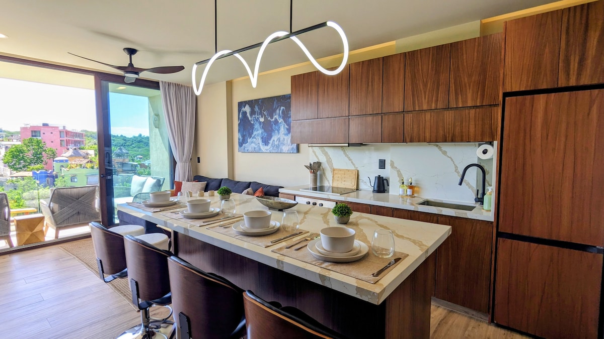 Oasis di langit, bertenggek tinggi di atas Sayulita, kondominium mewah ini terapung antara hutan & laut. Mulakan hari anda dengan bunyi burung tropika, nikmati tenaga bandar yang melayang dari bawah, dan berehat di kolam renang infiniti atas bumbung atau tab mandi air panas dengan koktel dari bar saat matahari terbenam. Menawarkan bilik tidur yang tenang, hiasan dalaman berjenama, kawasan rehat yang luas serta kawasan untuk yoga, gimnasium dan ruang kerja bersama, tempat percutian ini adalah tempat ketenangan hutan bertemu dengan jiwa Sayulita yang meriah.