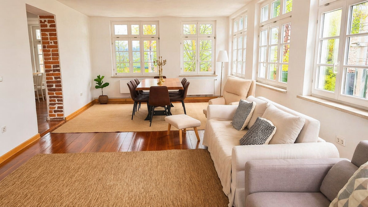 Terokai sewaan percutian unik kami! Dengan 2 bilik tidur dan tempat duduk sehingga 6 tetamu, ia menawarkan teres atas bumbung yang menakjubkan, rasuk terdedah, dan galeri yang menawan. Terletak ideal di laluan basikal Danube dan hanya 20 minit dari Legoland. Nikmati keselesaan dan gaya dalam suasana bersejarah!