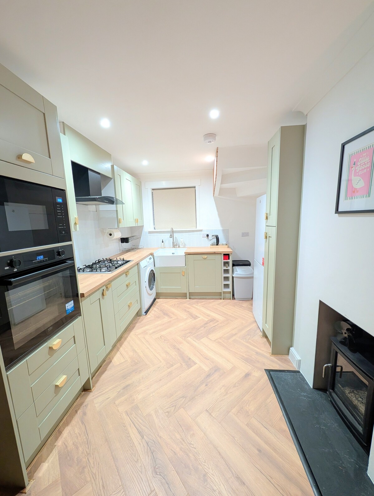 Tempat yang terletak di pusat bandar. Masa berjalan kaki keluarga/rakan-rakan anda: Stesen Kereta Api & Bas 5 minit berjalan kaki, Tesco & Asda 24 jam 4 minit berjalan kaki, Taman terbuka & Kolam renang dalaman 3 minit berjalan kaki, 16 restoran 5 minit berjalan kaki, pawagam 3 minit berjalan kaki Pilihan Bilik 9 katil; 1 x Katil saiz King atau Twin Bilik keluarga dengan katil dua tingkat 1 bilik bujang Ruang makan/ Ruang tamu dengan 2 x katil sofa Ketuhar/gril periuk, ketuhar gelombang mikro, peti sejuk beku, mesin basuh, mesin basuh pinggan mangkuk dll Taman persendirian; 2 x pancuran mandi & Tandas