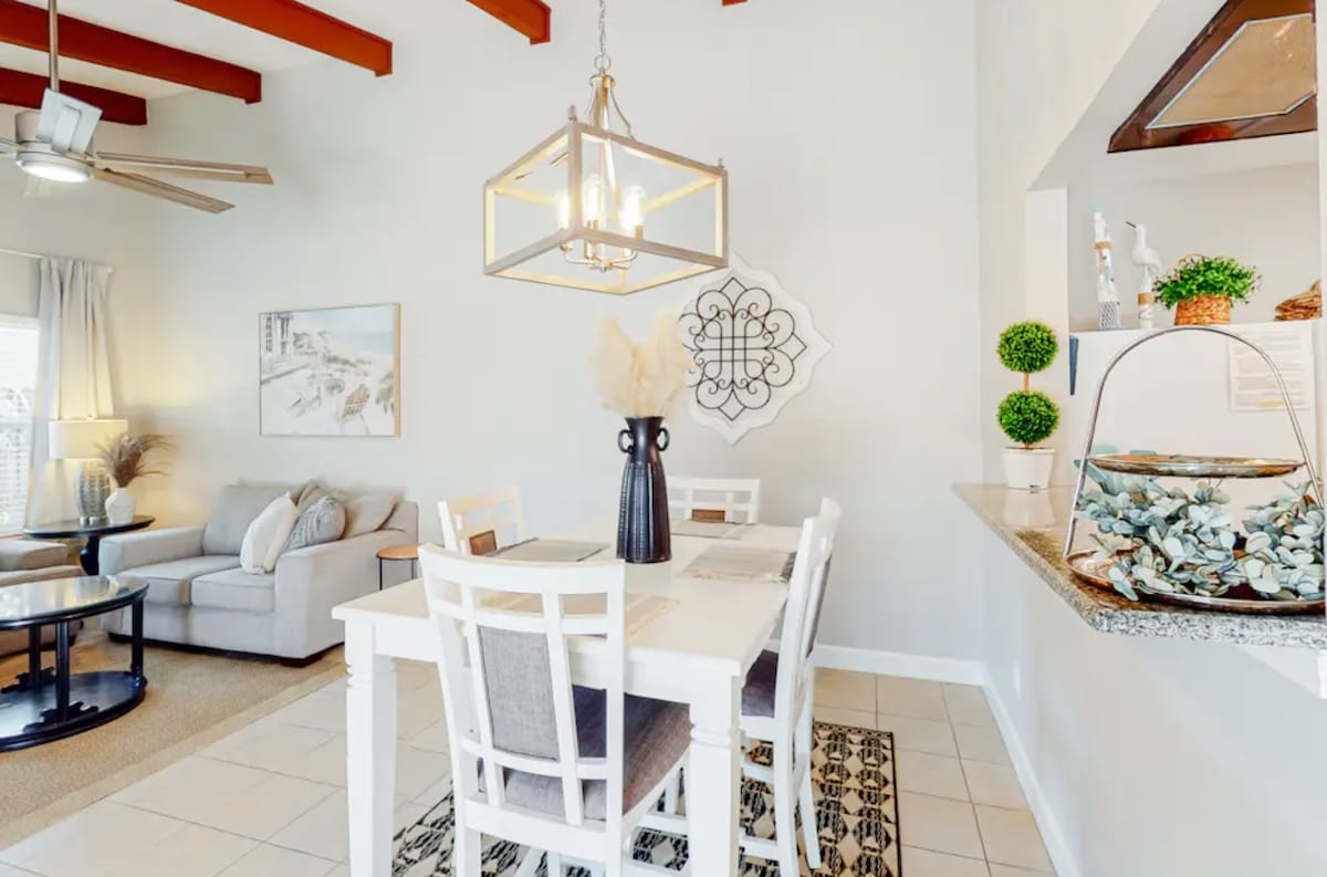 - Lakefront dengan pemandangan indah Tasik Stewart di lubang ke-14 dari patio skrin berganda kami. Kami berjarak beberapa langkah dari pantai pasir putih Teluk Mexico. - Dua bilik tidur utama en-suite, masing-masing dengan katil king size. Membeli-belah, bar kopi & restoran/bar dalam jarak berjalan kaki. Terokai dengan berjalan kaki atau sewa kereta golf/skuter di kawasan berhampiran dengan vendor. Ini ialah kondominium tingkat bawah dengan tempat letak kereta berkenderaan. Segala keselesaan rumah di vila golf kami yang terletak di Seascape Golf & Tennis Resort yang indah.