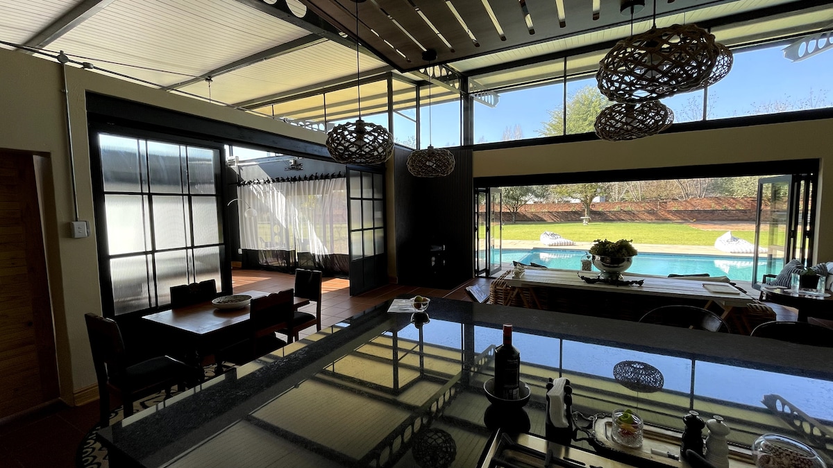 Unwind in a private Harties escape with a hot tub, pool & mountain views — ideal for romantic getaways or laid-back weekends, just 45 mins from JHB & PTA. Designed with glass architecture and seamless indoor-outdoor living, enjoy sunsets from the hot tub, evenings by the fire pit, and relaxed braais with a view. Full solar power means no loadshedding interruptions. Sleeps 4 comfortably. Perfect for birthdays, anniversaries or a peaceful reset — limited weekends available, book early.
