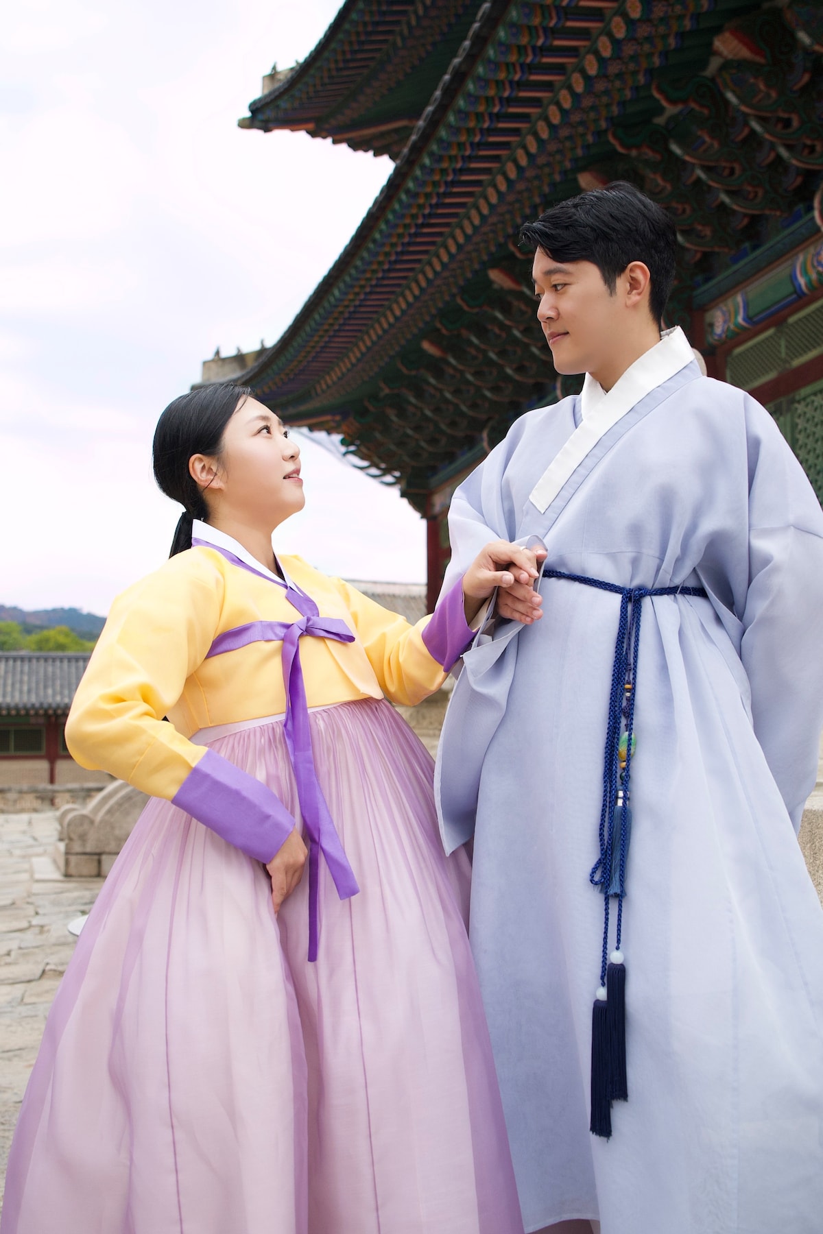 Sesi penggambaran Hanbok di istana Gyeongbokgung. Sewa dibayar secara berasingan, 20,000 Won seorang