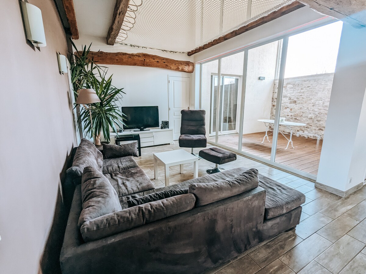 🥂 Selamat datang ke Épernay, ibu kota champagne! 🥂 Rumah bandar yang menawan terletak di kawasan yang tenang, 500 m dari pusat bandar, di penghujung jalan jalan kaki. Nikmati taman tertutup dan teres yang cerah, sesuai untuk berehat selepas lawatan dan sesi merasa. 🏡 Sesuai untuk 2 orang Memuatkan 🛏️ sehingga 4 orang (katil sofa yang selesa) 📶 Wifi, TV, dapur penuh 🚗 Tempat letak kenderaan percuma berhampiran 🌿 Tempat yang tenang di tengah-tengah Épernay