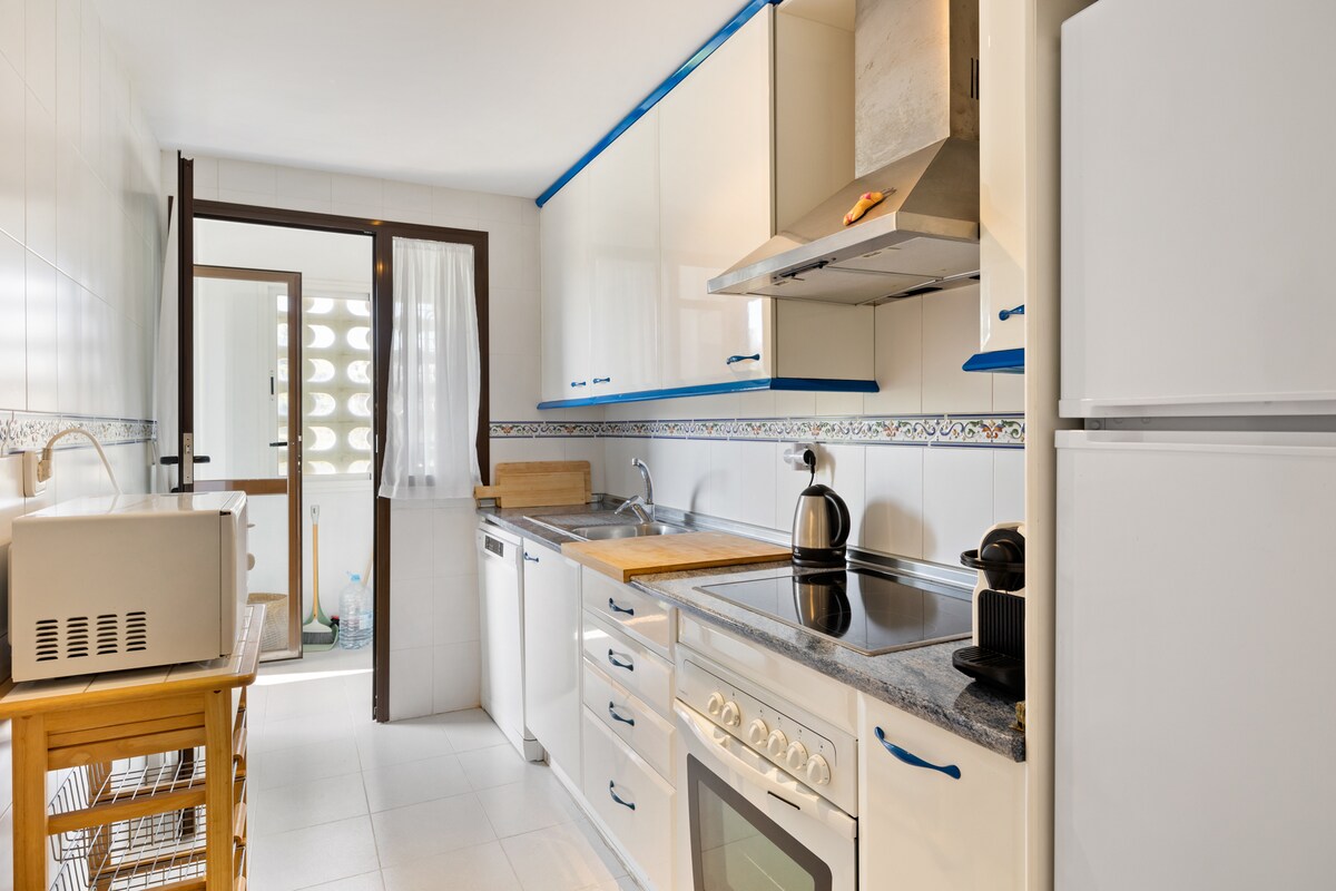 Nuestro apartamento esta ideado para hacer vida exterior aunque nada ha sido descuidado en el interior, con una estupenda zona de estar y comedor con acceso directo a la amplia terraza, cocina completamente amueblada con todos los electrodomesticos, así como todo lo que usted necesita durante su estancia. Aire acondicionado para el verano y caliente para los meses más frios. Las habitaciones son también atractivas, una de ellas con estupendo cuarto de baño en-suite. WIFI y smart TV con Netflix