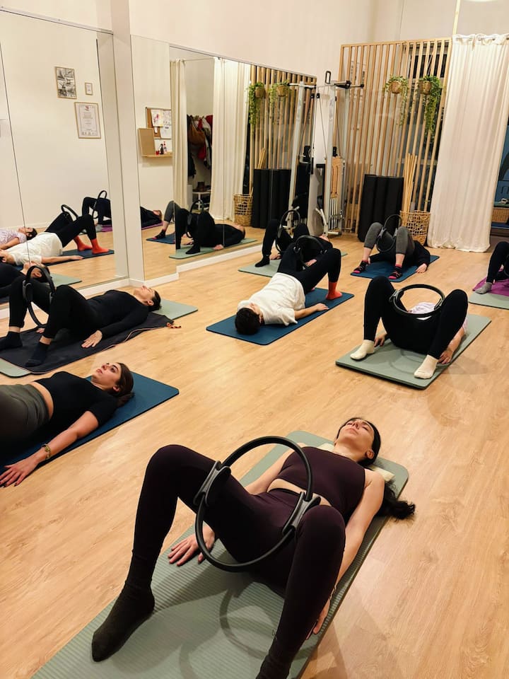 Sesi pilates matwork ini direka untuk sehingga 7 orang dan melibatkan penggunaan alat kecil. Ini peluang untuk berhubung dengan peminat lain dan mendapat tenaga daripada sokongan kolektif.
